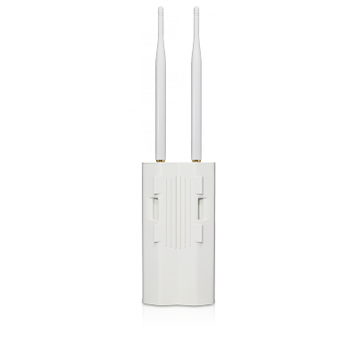 The UAP-Outdoor includes two external antennas and a secondary Ethernet port for bridging. It supports 802.11n MIMO, with speeds of up to 300 Mbps and a range of up to 183 m (600 ft).