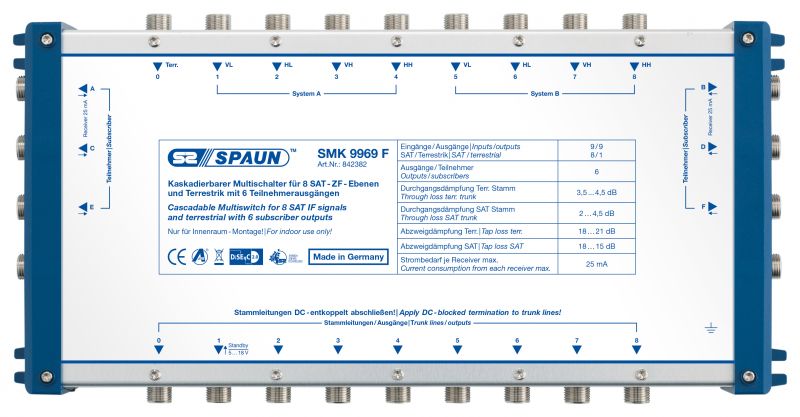 Cascadable multiswitch 8 SAT IF signals 6 subscribers